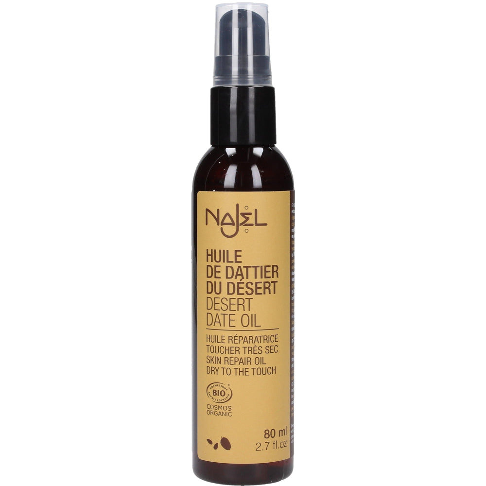 🌿 Découvrez la magie de l'huile biologique de datte du désert Najel ! Issue de la première pression à froid des graines de datte du désert, cette bouteille de 80 ml est votre solution idéale pour obtenir une peau soyeuse et lisse. Parfaite pour revitaliser une peau sèche, craquelée et tendue, cette huile nourrissante offre des soins d'adoucissement exceptionnels, pénètre rapidement sans laisser de résidu gras. Elle convient aussi à la peau mixte !