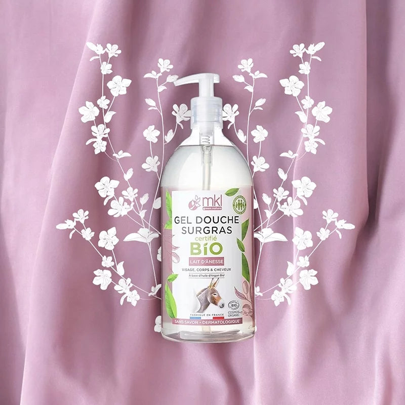 - Ingredients: Aqua, Coco-Glucoside, Sodium Coco-Sulfate, Coco-Betaine, Donkey Milk*, Aloe Barbadensis Leaf Juice Powder*, Argan Oil Polyglyceryl-6 Esters, Glycerin, Glyceryl Oleate, Parfum, Citric Acid, Sodium Benzoate, Sodium Gluconate, Potassium Sorbate. *Ingredients from organic farming. 💖 Elevate your shower experience with MKL Green Nature's Organic Donkey Milk Shower Gel and enjoy soft, hydrated, and nourished skin every day! Plus, purchase this product and earn 9 loyalty points!